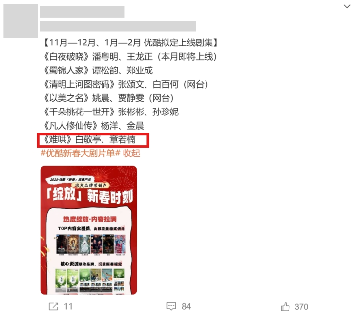 在裤最新发布的拟定上线剧集片单中,《难哄》显明在列。