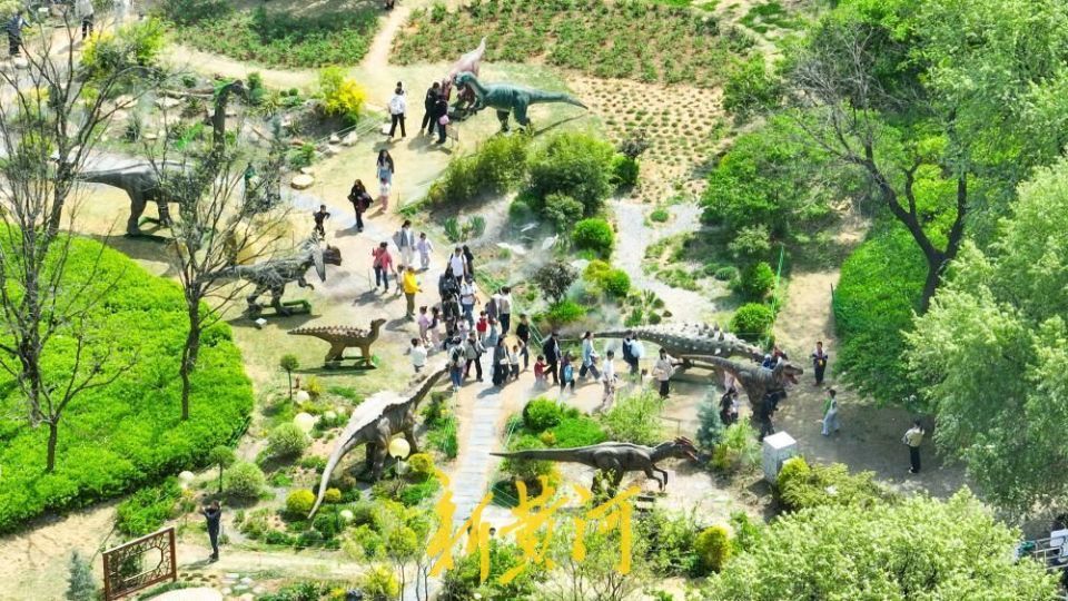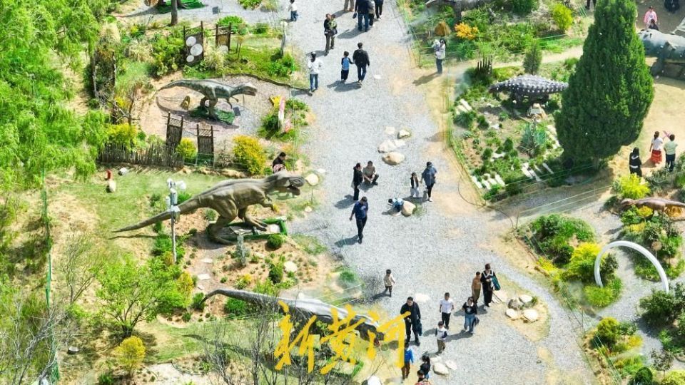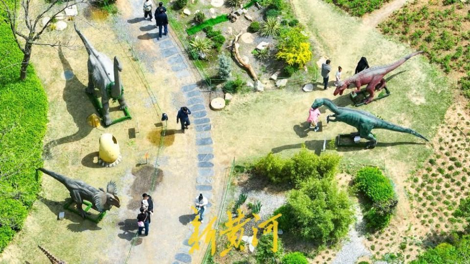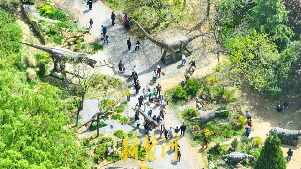 4月5日,明朗假期第二天,位于济南丛林公园分享大草坪东侧的“重返侏罗纪”恐龙艺术展对公众怒放。
