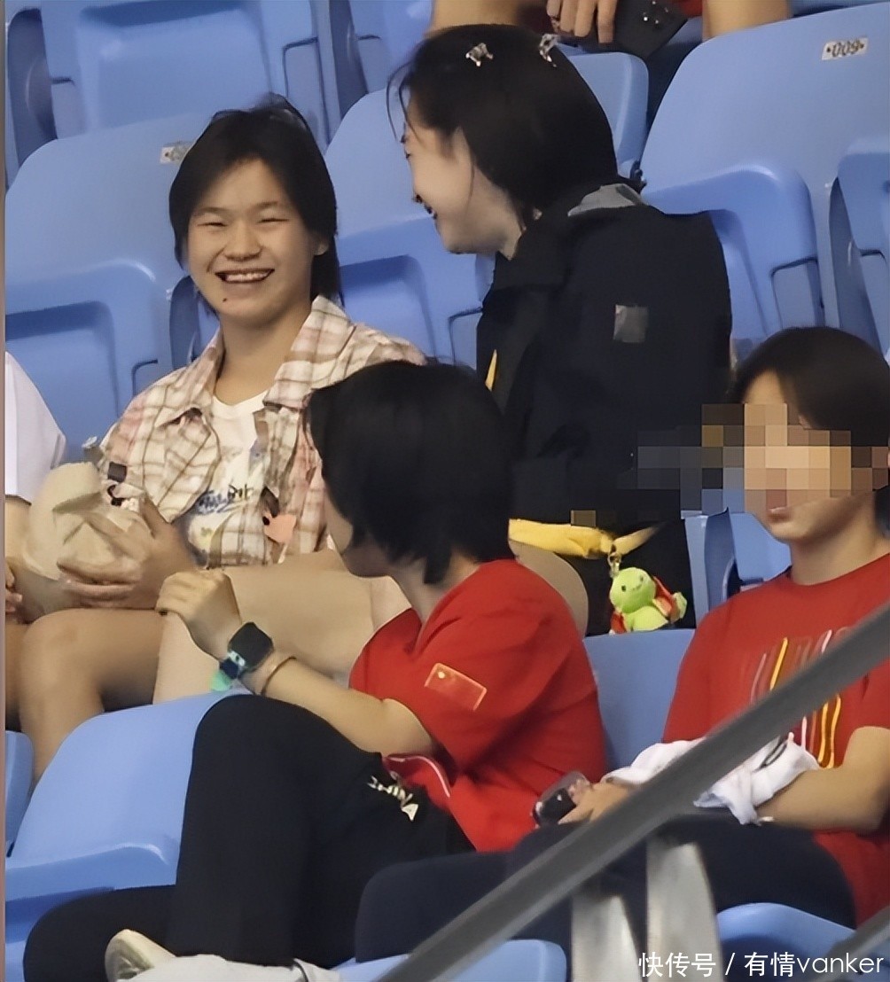 诚然此次全红婵因为旧伤莫得进入冠军赛,然则她和雷同因伤缺席比赛的昌雅妮也一块出刻下了不雅众席上为队员们加油饱读气。