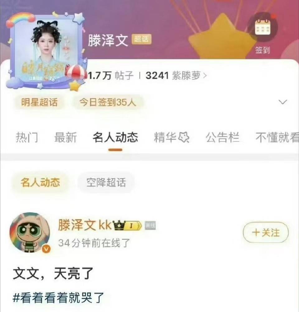 但恩爱帖还没热乎起来,就被滕泽文秒删,毕竟那时田栩宁网传的正牌女友是若若,滕泽文此言一出等于在打着小三的旌旗蹭热度。