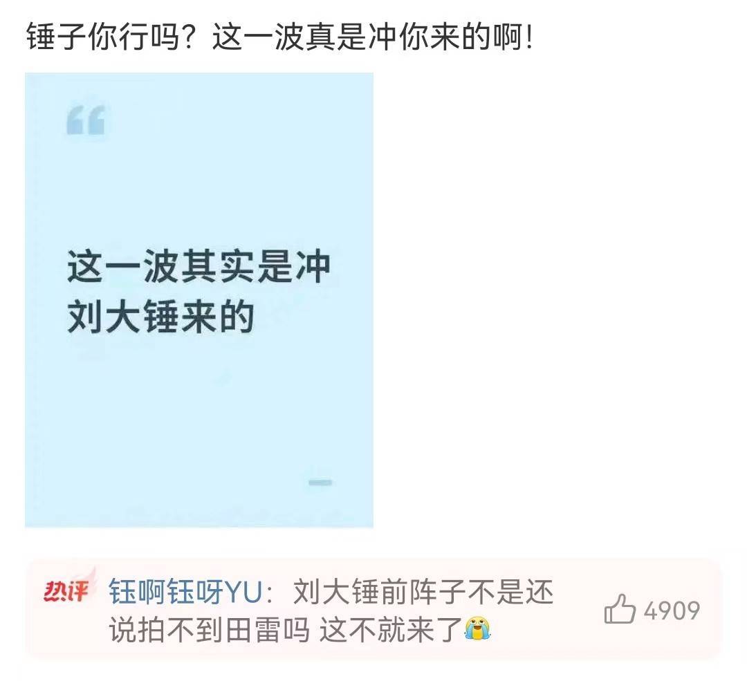 大锤不说还好,此言一出更让网友以为大锤手里有大瓜。