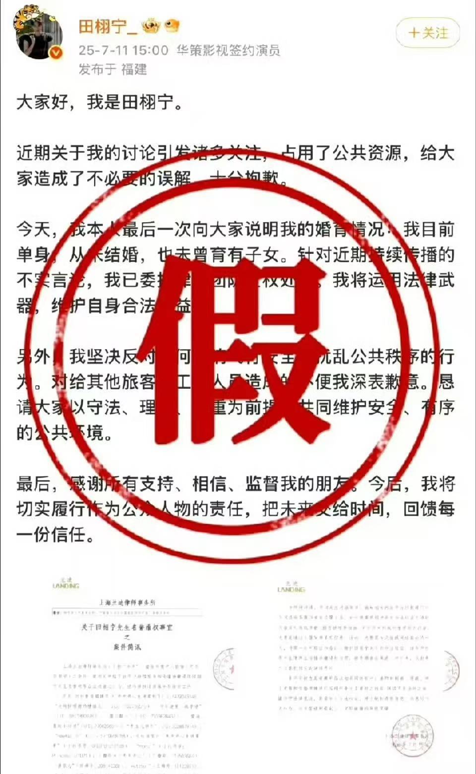 即便在2025年6月,田栩宁现身机场,背包上吊挂奶瓶被网友指认“隐婚生子”,也被经纪公司华策反手一个声明严词否定。