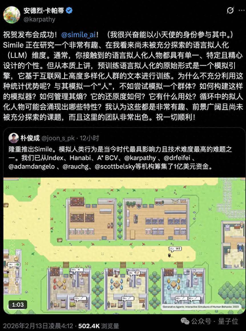 [1]https://x.com/joon_s_pk/status/2022023097017421874[2]https://x.com/karpathy/status/2022041235188580788— 完 —