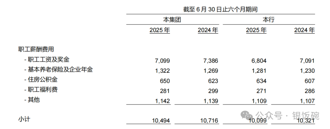 凭证该行2025年半年报,上半年职工薪酬用度忖度100.99亿元,较2024年同期的103.21亿元减少2.22亿元,降幅2.15%。东谈主均薪酬用度约为21.25万元,该数据较2024年同期的21.97万元减少0.72万元,降幅为3.28%。